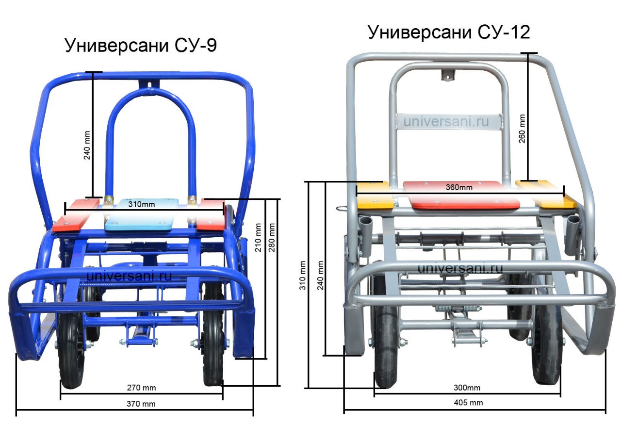 - Технические характеристики санок с колёсами Универсани СУ-12